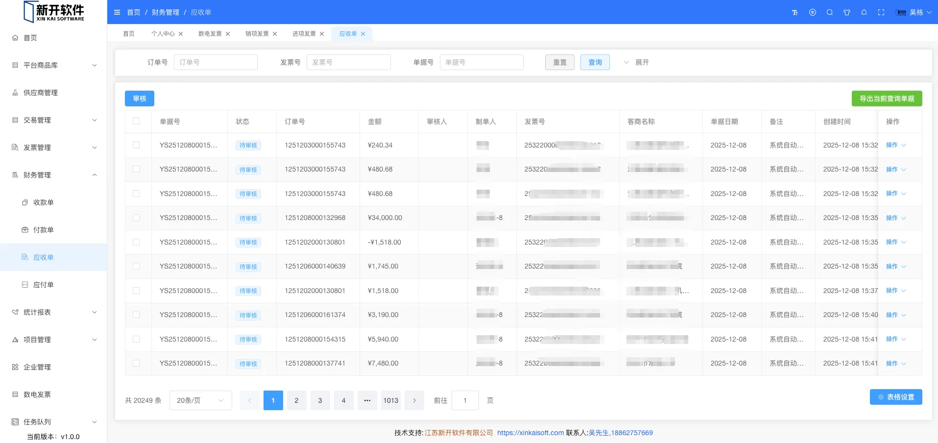 展示所有应收单信息。