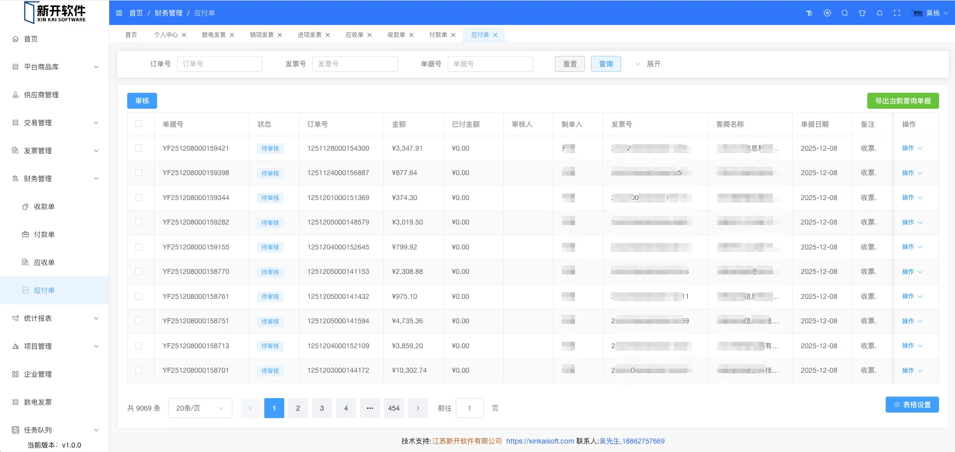 展示所有应付单信息。