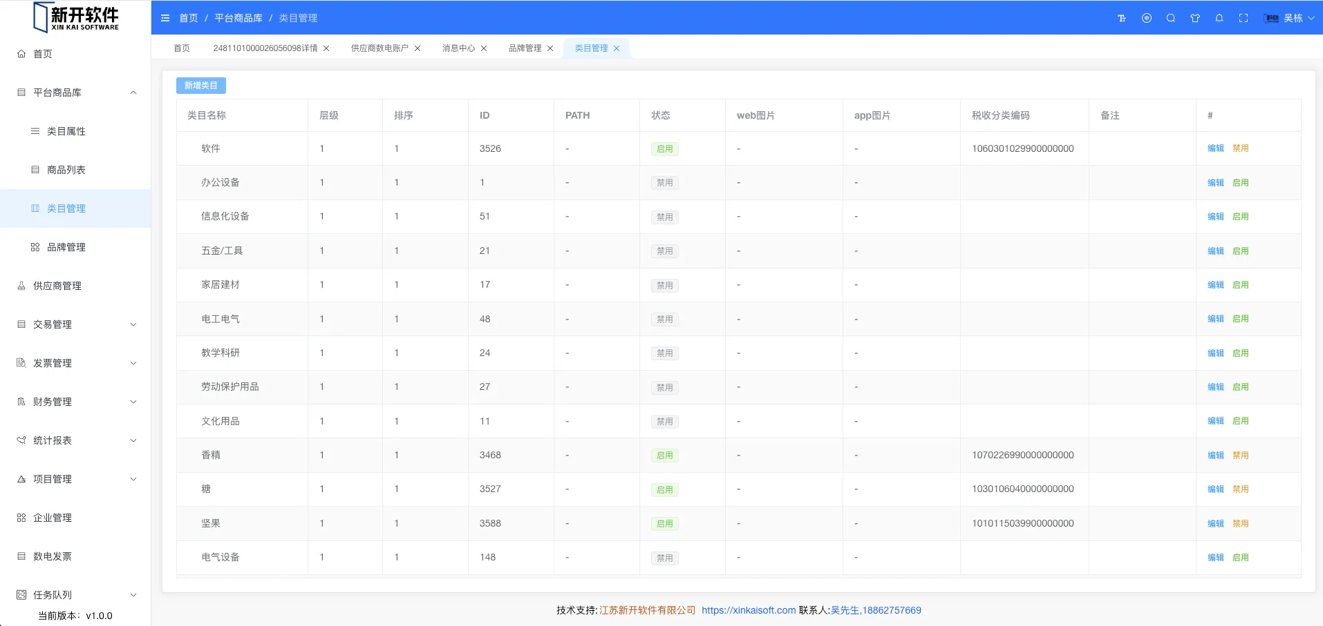 管理商品的类目信息,包括类目名称、类目描述等信息。