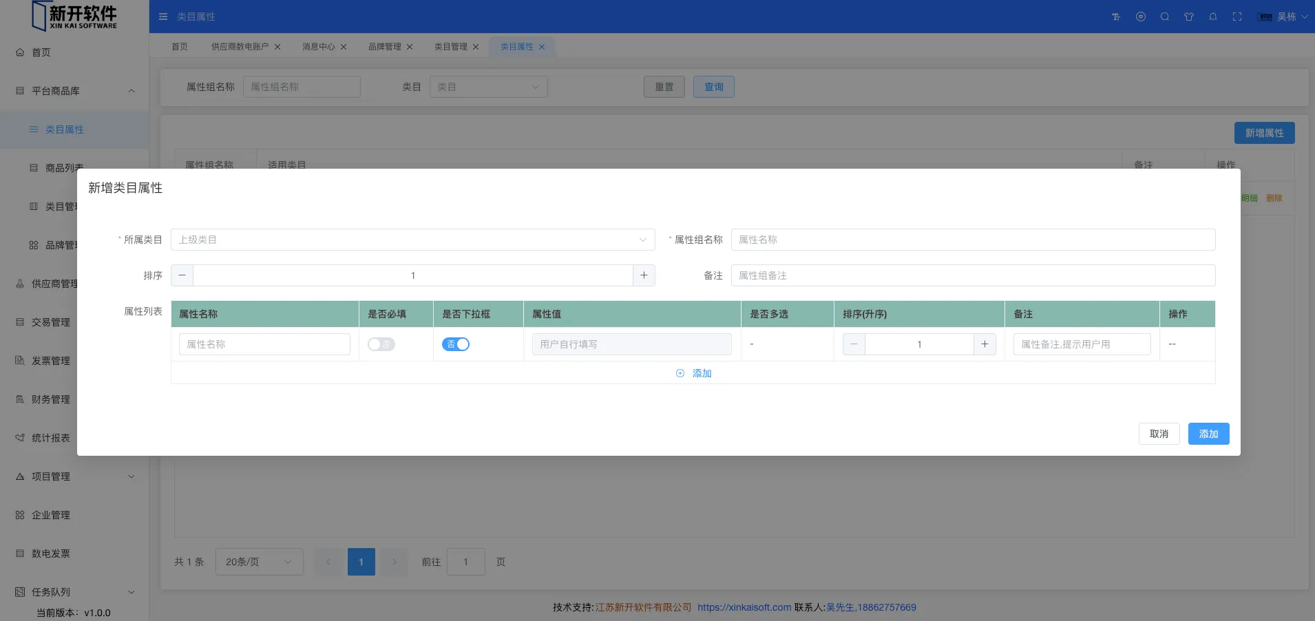 填写属性名称、属性值、属性描述等信息,保存属性信息。